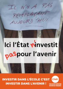 Dans nos écoles et nos établissements, en rassemblement, en manifestation, rendons visible les conséquences concrètes des choix budgétaires, sur notre travail au quotidien, sur le service public d’éducation au quotidien!