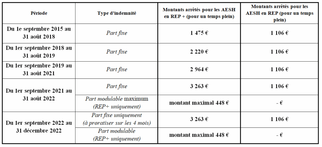 Pour le calcul précis de l’indemnité, les services tiendront compte de la quotité de travail prévue au contrat, de la quotité de travail effective par période au sein d’une école ou un établissement relevant d’un réseau d’éducation prioritaire, de la durée d’exercice sur l’année scolaire.